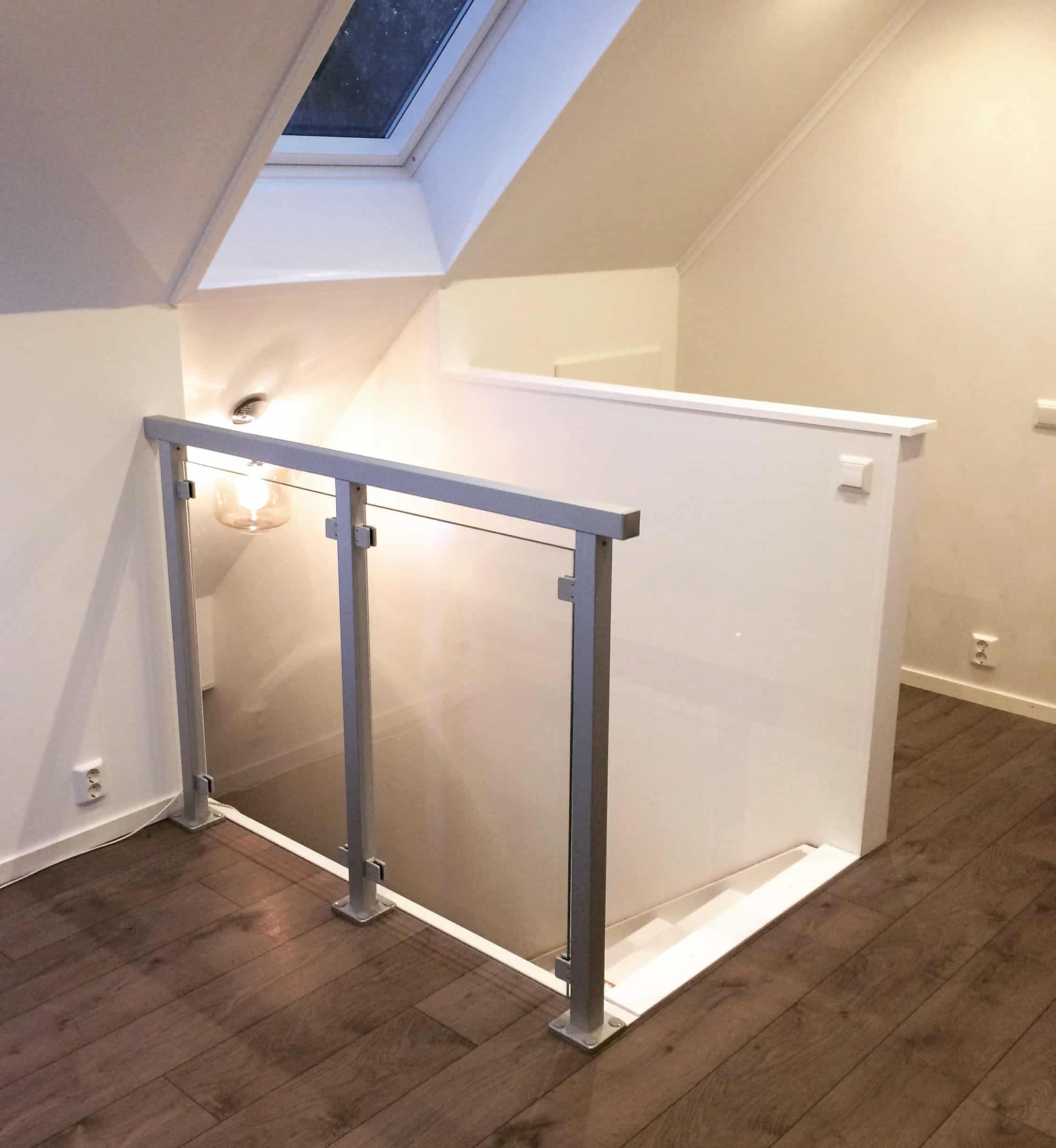 - Stolper eller vægmontering: Glasgelænderet kan monteres med diskrete stolper, med klemmer direkte i trappen – eller i nogle tilfælde som væghængt løsning.