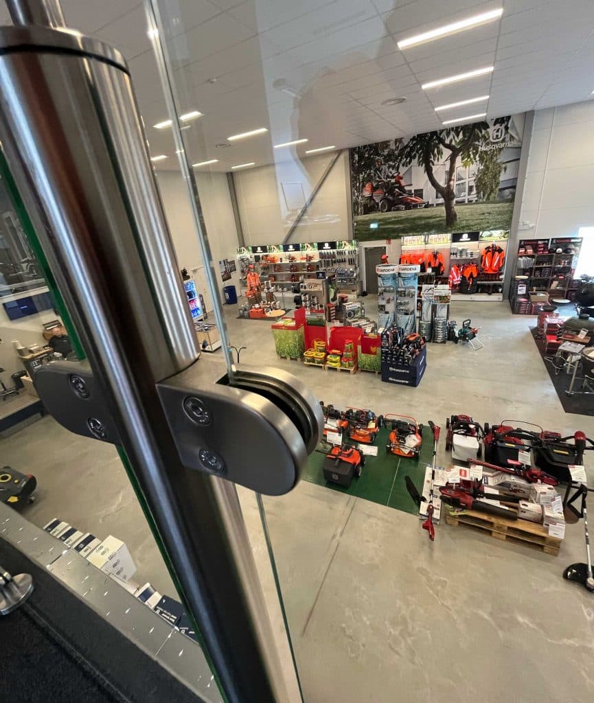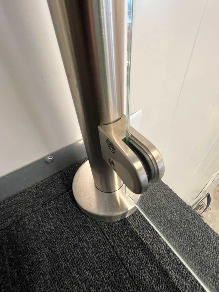 - 30 m topmonteret rustfrit glasværn med rustfri overligger og 8,76 mm glas