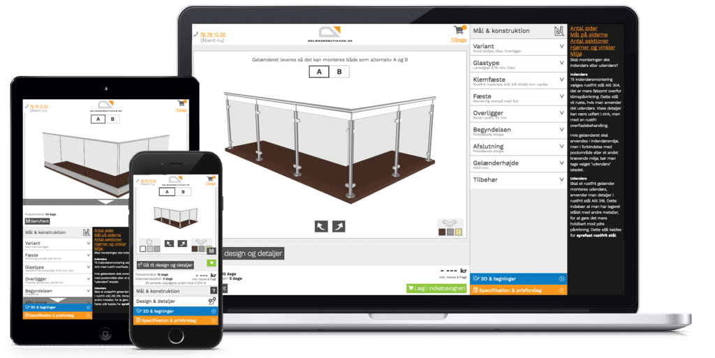 Med vores interaktive designværktøj kan du tilpasse alle detaljer og se resultatet i 3D – mens prisen opdateres i realtid. Alt produceres efter dine mål.