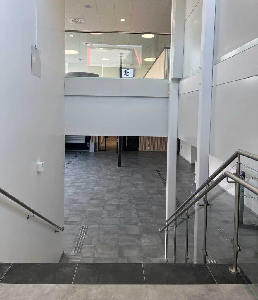 Arena i Åstorp hvor Gelænderbutikken har leveret stolpefrit glasværn med sikkerhedskravet 3 k/N.