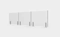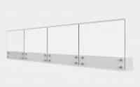 - Gulvbeslag: Hvert glasstykke fæstnes i to gulvbeslag i aluminium – enten uden på eller oven på underlaget.